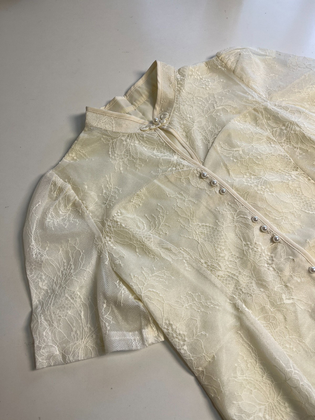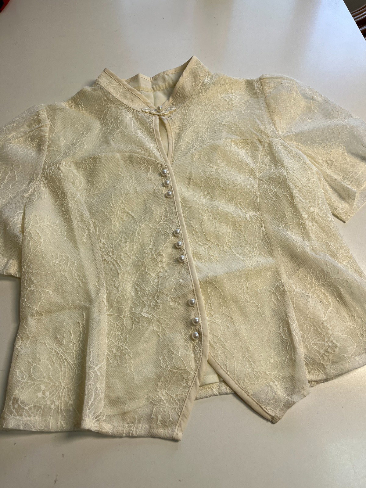 🌸 Blusa Importada de Encaje 🌸 Elegancia que enamora ✨ Detalles de perlas y encaje delicado en tono crema. Ideal para ocasiones especiales o para elevar tu look diario.