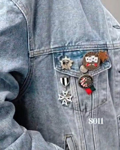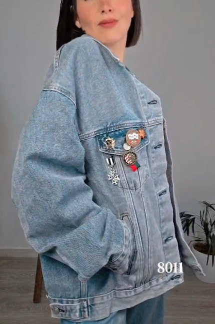 💙 Campera Denim Oversize – 8011 💙 El clásico jean reinventado con personalidad. Fit oversize, talle único y detalles únicos ✨ Parche marrón en el bolsillo + pines metálicos que marcan estilo: ⭐ cruz, cintas y personajes.