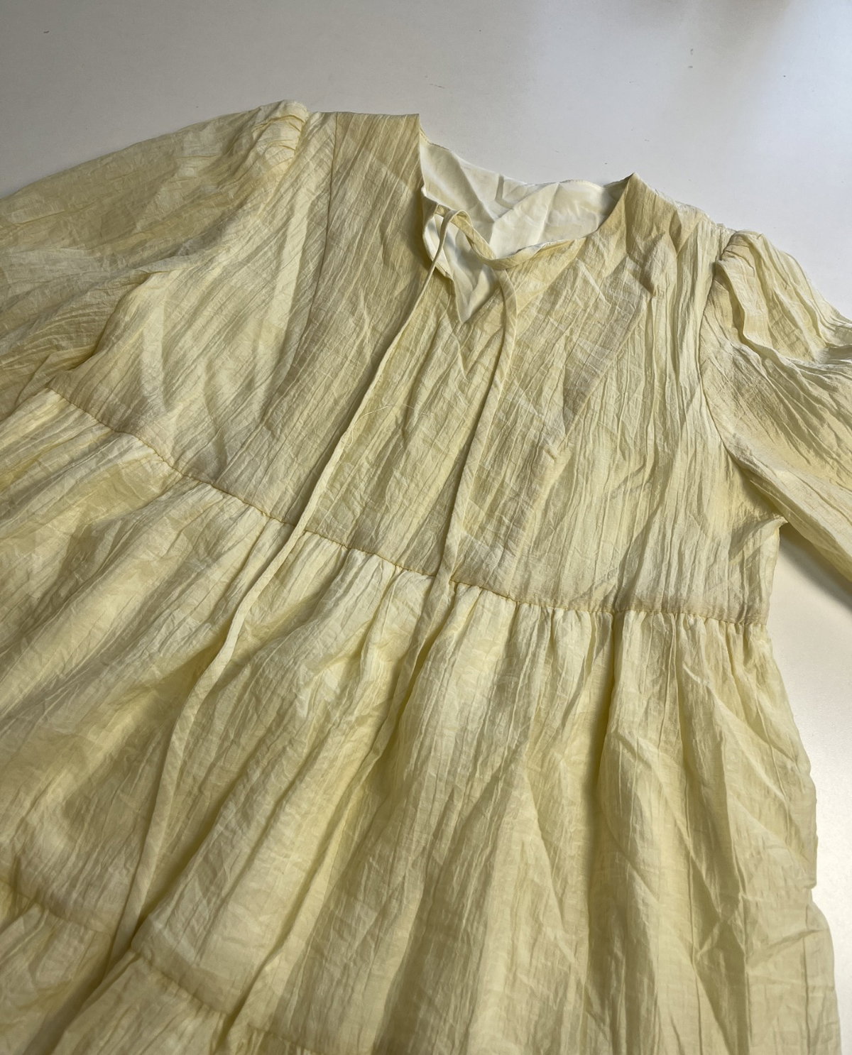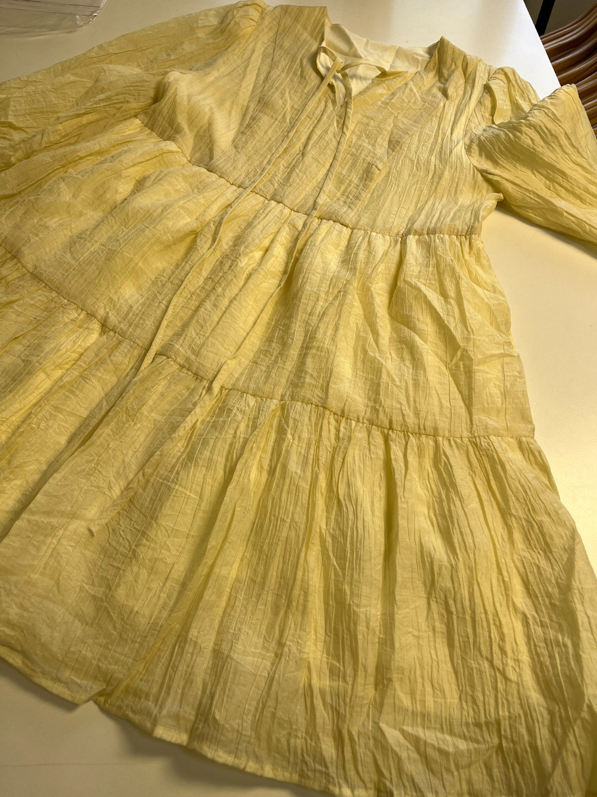 Diseño: – Escote redondo con abertura y lazo regulable, detalle delicado y femenino – Mangas 3/4 abullonadas con terminación suave – Corte suelto y relajado, ideal para usar cómodo todo el día – Falda de 3 capas, que aporta volumen, vuelo y un movimiento precioso al caminar – Largo por encima de la rodilla, versátil y favorecedor